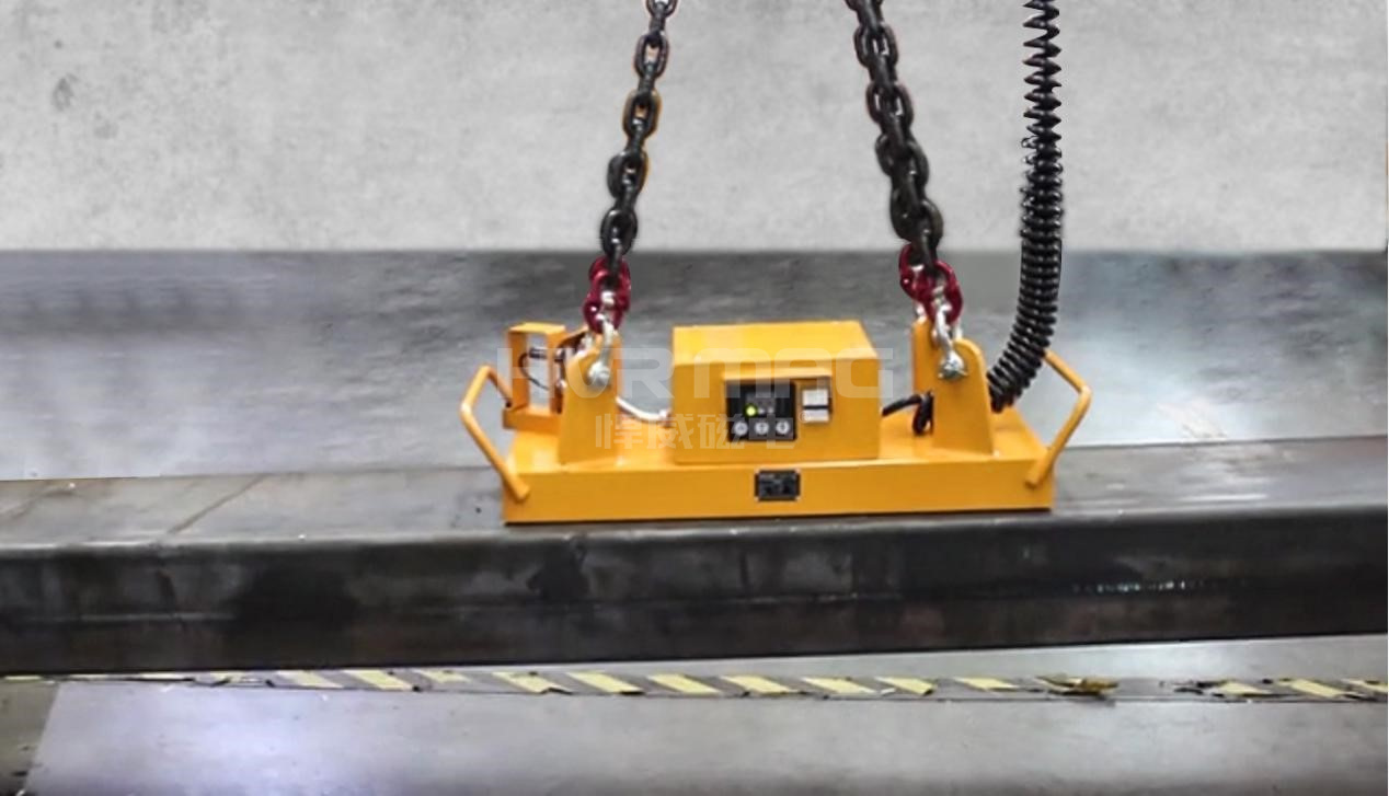 需要注意的是,在使用單點(diǎn)式電永磁吊具吊運(yùn)比較細(xì)長(zhǎng)的鋼材時(shí),應(yīng)將磁鐵放在負(fù)載的中心位置處吸吊,以維持整體吊運(yùn)動(dòng)作的平衡。