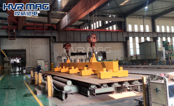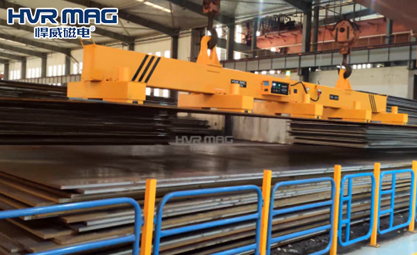 悍威磁電的這套20噸中厚鋼板專用電永磁吊具由多套電永磁鐵、歐式梁及電控系統(tǒng)構(gòu)成。這三大重要結(jié)構(gòu)造就了悍威電永磁吊具安全節(jié)能、穩(wěn)定可靠、便捷的特色。
