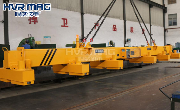 悍威磁電研發(fā)設(shè)計了一款帶有伸縮梁的起重電永磁吊具,這種起重電永磁吊具可以通過橫梁來進(jìn)行伸縮,當(dāng)搬運(yùn)不同尺寸的鋼板時可以通過控制橫梁的長度以此來適應(yīng)不同的鋼板,這種起重電永磁吊具磁力吸附均勻,不會造成鋼板變形或者損傷,完全可以滿足多尺寸鋼板工業(yè)車間的應(yīng)用需求,可以安全、高效地進(jìn)行吊裝搬運(yùn),減少工人吊裝時間,提升工作效率。
