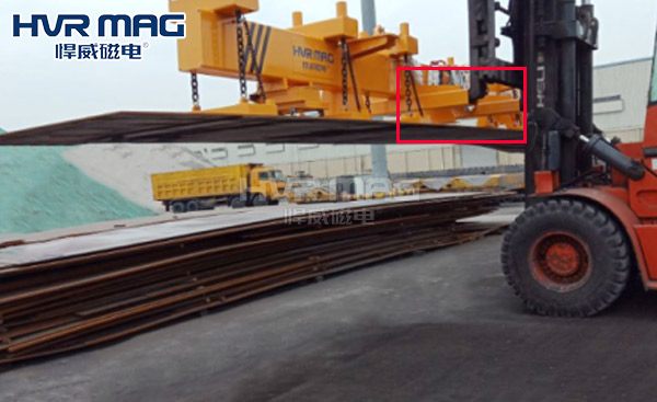 6.該款起重電永磁鐵是叉車專用的(見前面伸出的兩根矩形鋼管)。
