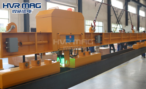 2,第二重保障就是在吊具調(diào)運(yùn)過程中,是預(yù)充磁就可以把產(chǎn)品吊起來,然后滿磁搬運(yùn)。使得在搬運(yùn)過程中又增加了一塊保障,預(yù)充磁是80%的磁力,滿磁是100%的磁力,這多出來的20%就是給搬運(yùn)過程中安全生產(chǎn)的。