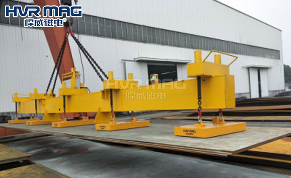 在面對鋼材多種工況時候電永磁吊具的其他功能就能發(fā)揮出最大的效果,比如在裝車時需要一次性吊裝多張,電永磁起重器就能實現(xiàn),磁力可分檔調節(jié),實現(xiàn)多張同時上料,單張下料的強大功能,或者是成排的方坯都可以一次性進行吊裝。