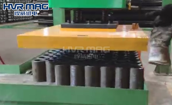 該自動(dòng)化實(shí)例可以看到,電永磁可以通過(guò)一臺(tái)整體的電永磁鐵進(jìn)行吸附60-70個(gè)產(chǎn)品,確保產(chǎn)品安全的搬運(yùn)不掉落和可通過(guò)控制器來(lái)調(diào)節(jié)磁力大小,加上彈簧進(jìn)行柔性搬運(yùn)。