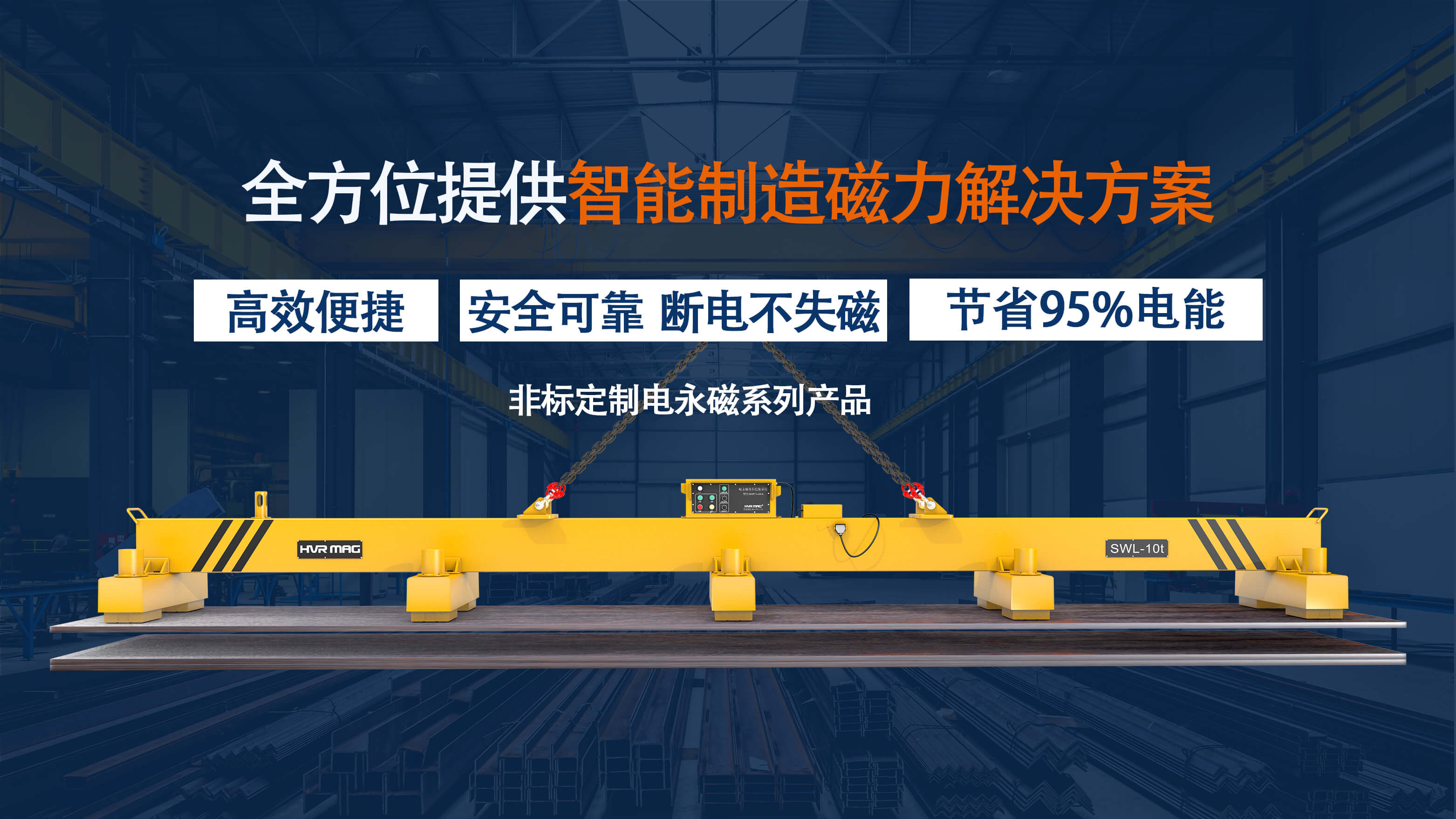 本次參展,悍威磁電將重點展示電永磁吊具、自動化電永磁夾具在鋼板智能化搬運過程的應(yīng)用。我們的專業(yè)團隊將在現(xiàn)場與您面對面交流,解答關(guān)于電永磁技術(shù)應(yīng)用的所有疑問,并針對您的實際需求提供定制化磁力搬運方案。