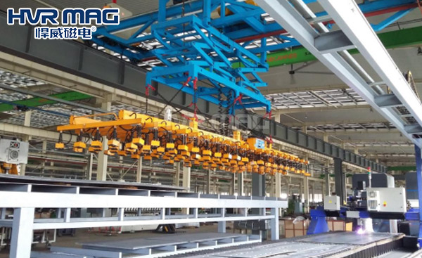 那么,磁力吸盤是如何快速分揀鋼板切割后的工件的呢?首先,就是磁力吸盤吊具,磁力吸盤吊具通過磁性吸力將各種不規(guī)則工件快速吸附,并運送至指定位置,進行下一步加工。當(dāng)然,磁力吸盤可根據(jù)車間實際需要,一次性完成單個或多個工件的搬運,以最大程度提高工件的分揀效率。