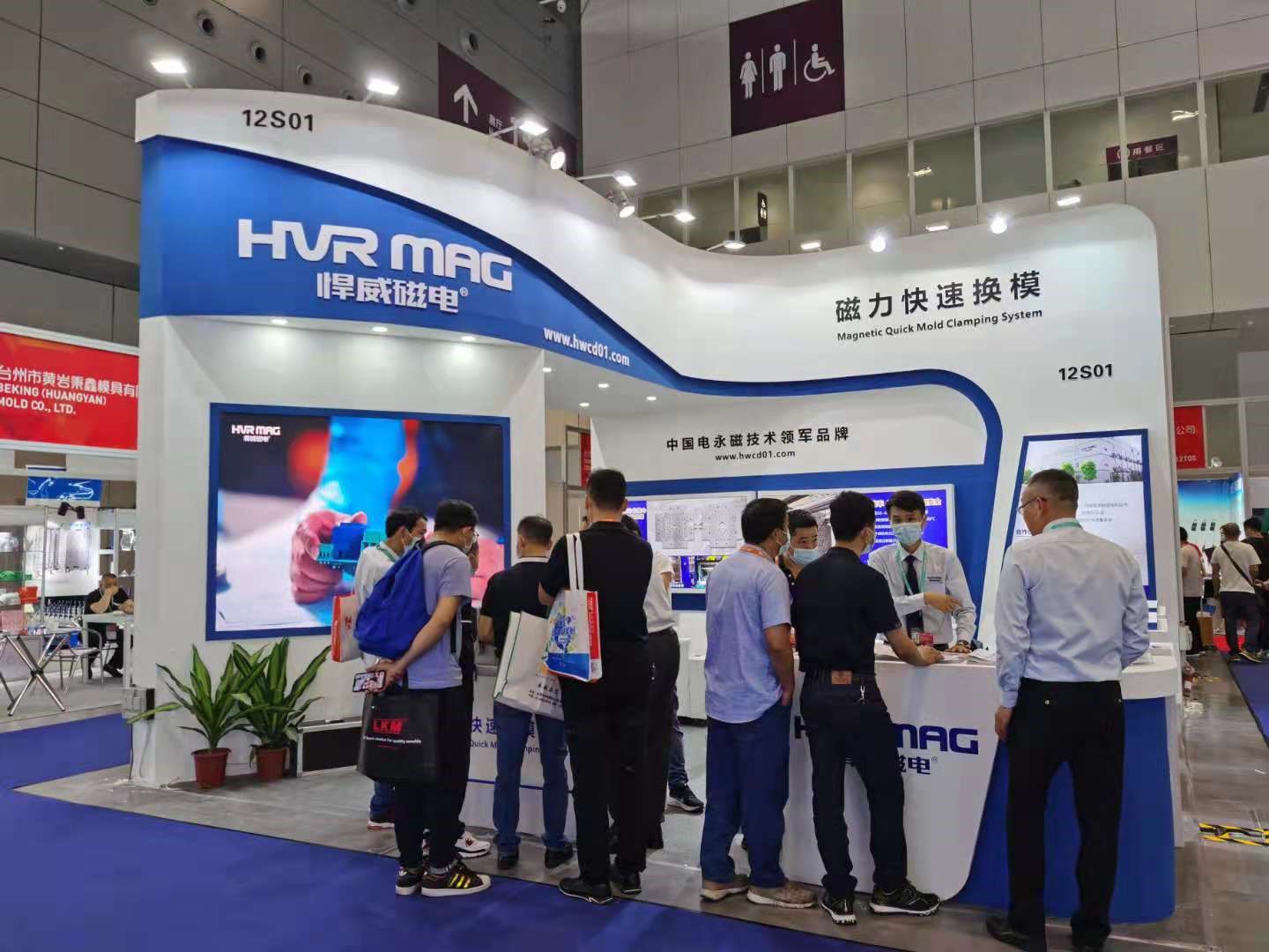 2021年第34屆中國國際塑料橡膠工業(yè)展覽會(huì)(CHINAPLAS), 于4月13日在深圳國際會(huì)展中心(寶安新館)如期舉行。悍威磁電攜其專業(yè)磁力快速換模系統(tǒng),亮相了此次為期4天的橡塑行業(yè)盛宴,在12S01展位與前來參觀的來自全國各地的企業(yè)廠家代表們,一起探討、交流了注塑機(jī)快速換模市場的趨勢,并邀請他們近距離體驗(yàn)了磁力模板的現(xiàn)場操作。