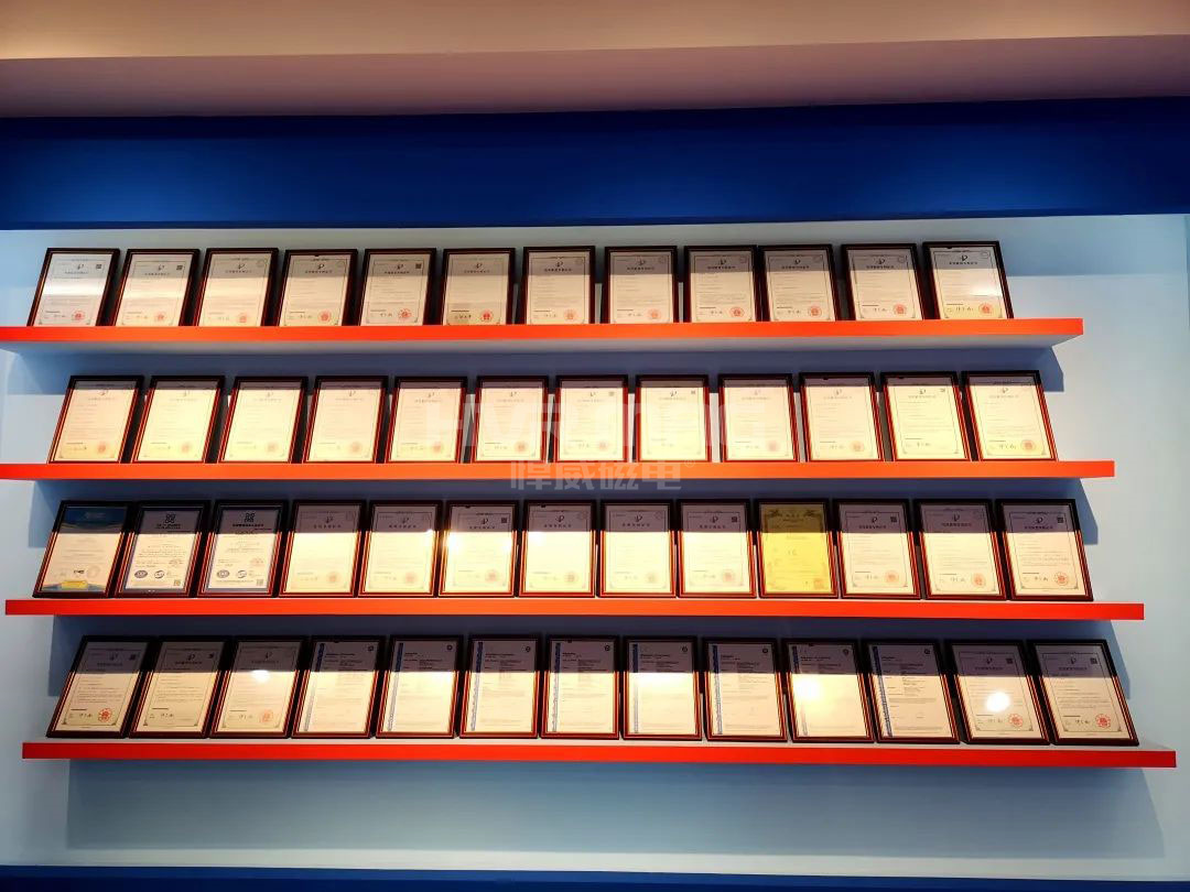 如今,悍威磁電已獲得6項(xiàng)發(fā)明專利、35項(xiàng)實(shí)用新型專利、3項(xiàng)國(guó)際專利,專利數(shù)量居國(guó)內(nèi)電永磁行業(yè)首位,部分核心技術(shù)處于國(guó)際先進(jìn)水平。
