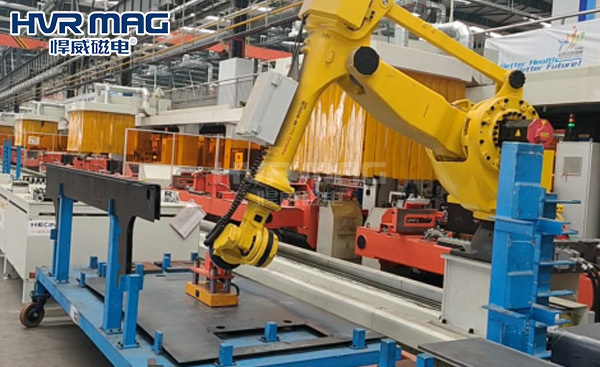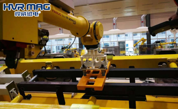 隨著國內(nèi)智能化生產(chǎn)的興起,碼垛機器人被應用于很多的大型生產(chǎn)線,主要用來代替人工來完成大量重復的工序,節(jié)省人工成本,提高生產(chǎn)效率,作為生產(chǎn)前的準備工序,鋼板的搬運與碼垛是很多企業(yè)頭疼的問題,對此悍威磁電研發(fā)生產(chǎn)了碼垛機器人專用電永磁夾具,本篇小編來為大家詳細介紹下。