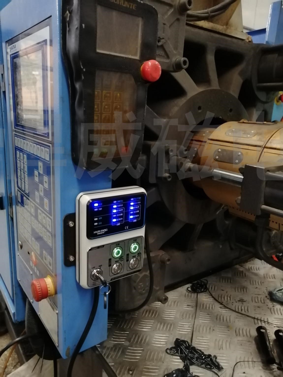 悍威磁電生產(chǎn)的注塑機(jī)換模系統(tǒng)的特點(diǎn)是: 結(jié)構(gòu)及控制非常簡(jiǎn)單,無任何機(jī)械夾緊零件和動(dòng)作,在模具背板與電永磁磁力模板磁極的接觸面上,不論是心部還是周邊,全部有永久性磁力夾緊,適用于各種形式和規(guī)格的注塑機(jī)。