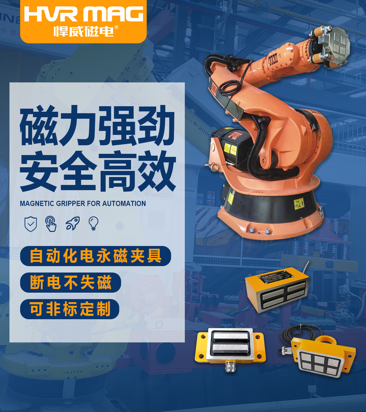 連接到自動(dòng)化設(shè)備或操縱機(jī)器人的電永磁鐵可以由PLC操作。通常僅需要3秒就能使自動(dòng)化設(shè)備上的磁鐵完成上磁和消磁操作,大大降低人工成本并提高客戶(hù)車(chē)間的生產(chǎn)率。