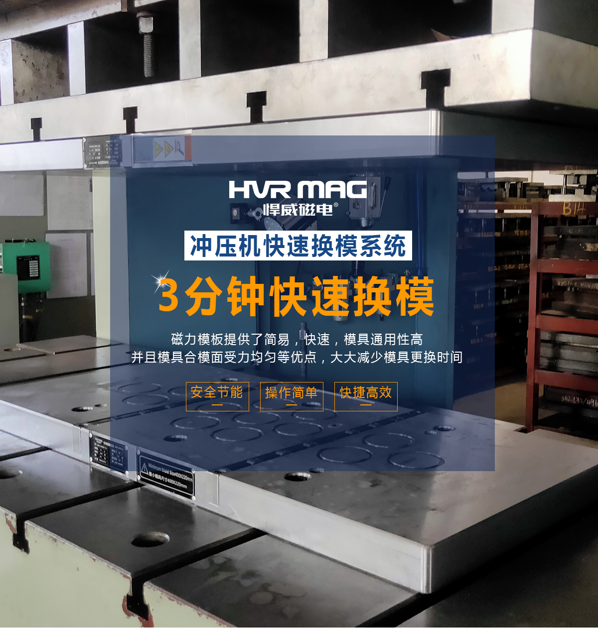 通常,電永磁快速換模系統(tǒng)更換模具只需要3分鐘,而更換大型模具的時間從2小時減少到10分鐘