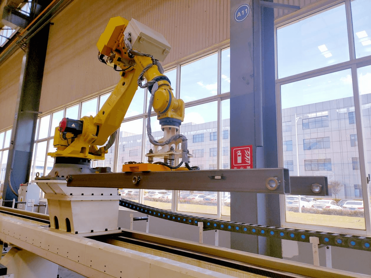 工件是鋼管,配合機(jī)器人搬運(yùn)鋼管,有側(cè)吸姿態(tài)轉(zhuǎn)換。鋼管直徑φ100mm~φ160mm,長(zhǎng)度500mm~1500mm,壁厚10mm-20mm,單根最重100kg,速度是2M/S,需要我們?yōu)樗麄兌ㄖ苹O(shè)計(jì)來(lái)解決這兩大難題。