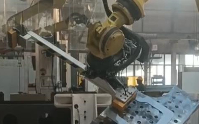 下圖是悍威磁電的電永磁磁力抓手,在一家工廠的自動化生產(chǎn)線上機器人手臂上的應用。我們可以從此案例,了解此機械臂夾具如何幫助提高客戶工廠的金屬工件的組裝效率。