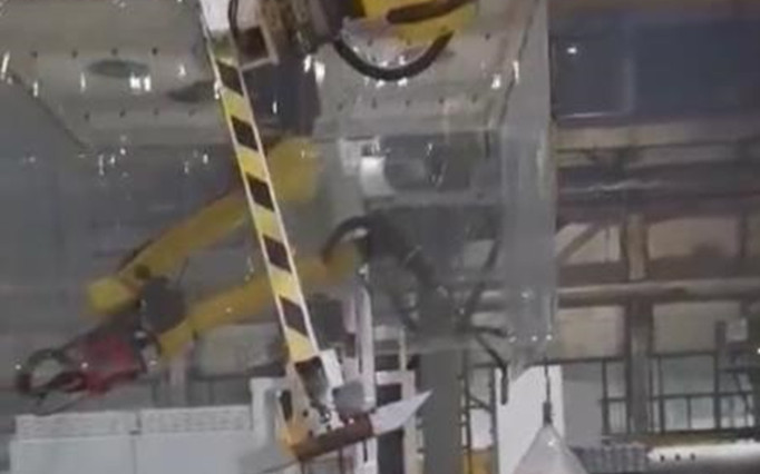 簡單介紹下整體工況:該機器人需要一次抓取一塊薄鋼板工件,然后將其固定、轉(zhuǎn)移并運送到下一條裝配線上,為焊接機器人上料。