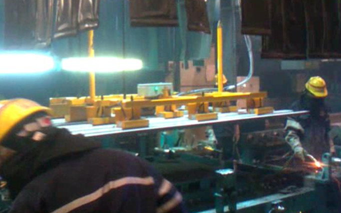悍威磁電提供的解決方案:龍門機(jī)械臂末端裝有專門設(shè)計(jì)的重型起重電永磁鐵。